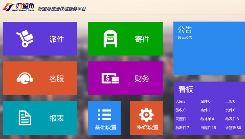 好望角物流快遞服務(wù)平臺以“最后一公里”為突破口,實(shí)現(xiàn)了快遞從配送中心到客戶手中的全流程服務(wù)。系統(tǒng)通過對接上游的快遞公司運(yùn)單進(jìn)行派件和計(jì)件操作,主要用來幫助該公司正確的統(tǒng)計(jì)派件、寄件數(shù)量,客戶服務(wù), 財(cái)務(wù)結(jié)算,店面管理等。用戶可通過使用該物流平臺,實(shí)現(xiàn)物流行業(yè)的派件(包括掃碼入庫,自提,收貨確認(rèn)), 派件登記(電子稱重,物流查詢跟蹤)。