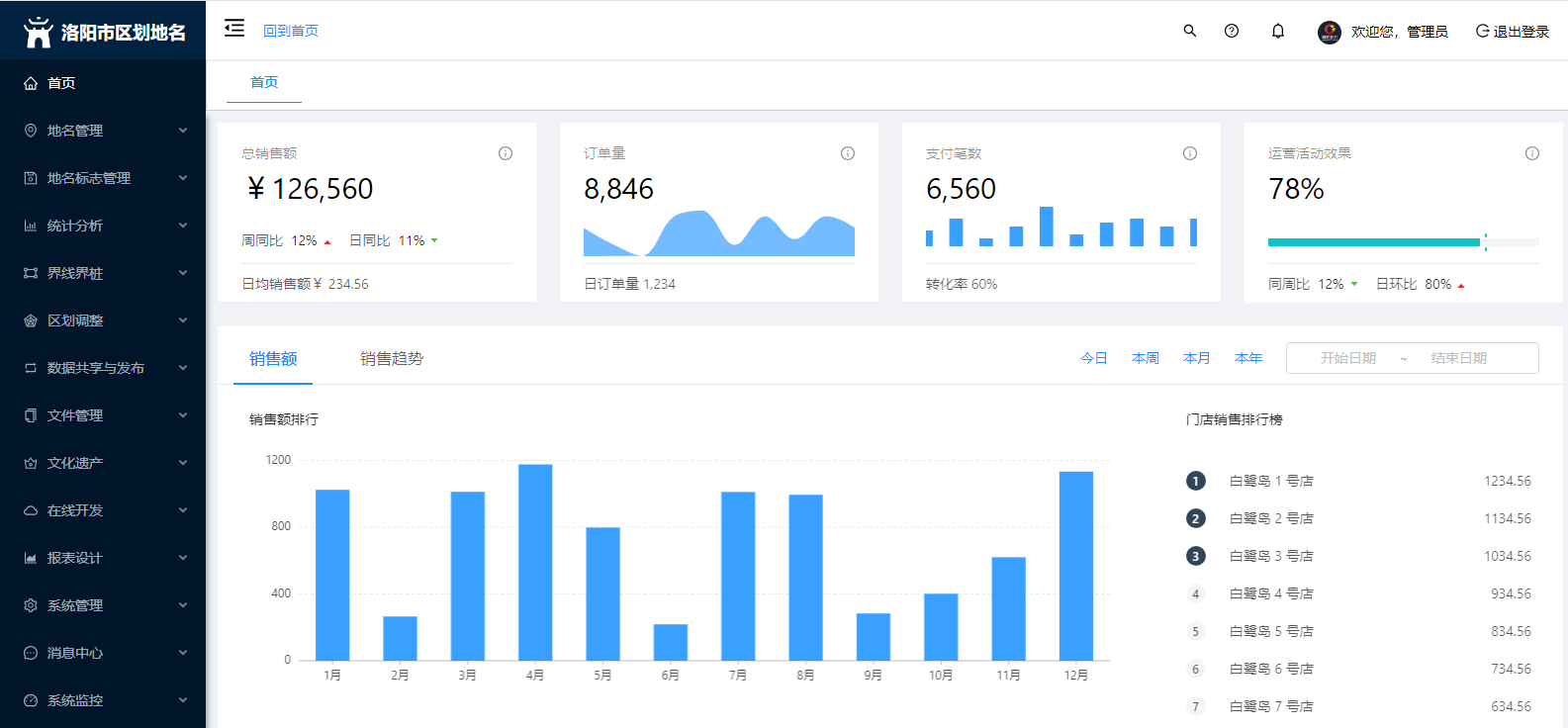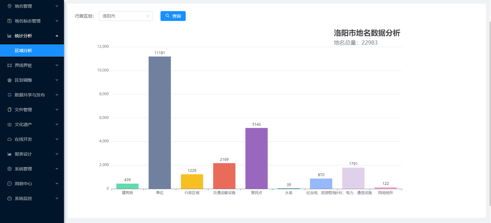 地名信息管理:地名管理、地名標(biāo)志管理、統(tǒng)計(jì)分析