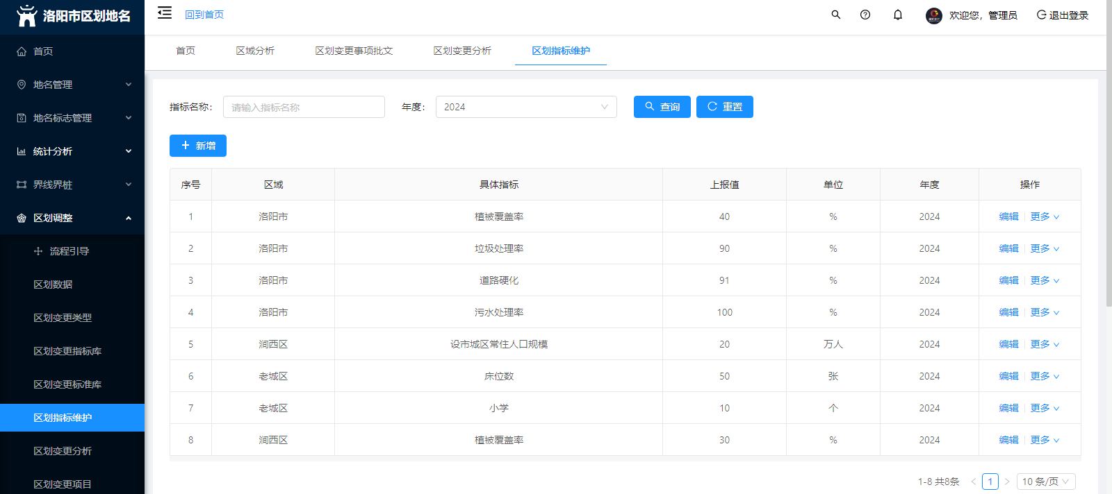 區(qū)劃調(diào)整:區(qū)劃數(shù)據(jù)、區(qū)劃變更類別、區(qū)劃變更指標(biāo)庫、區(qū)劃指標(biāo)維護(hù)、區(qū)劃變更分析、年度區(qū)劃變更表、區(qū)劃變更事項(xiàng)批復(fù)文件、歷史文件上傳